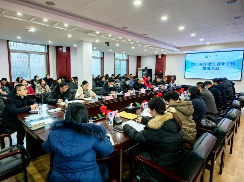 12月27日,best365中国官方网站2025届毕业生就业工作推进大会在校部第一会议室召开。党委书记周志强出席会议并讲话,党委常委、副校长王国刚主持会议。
