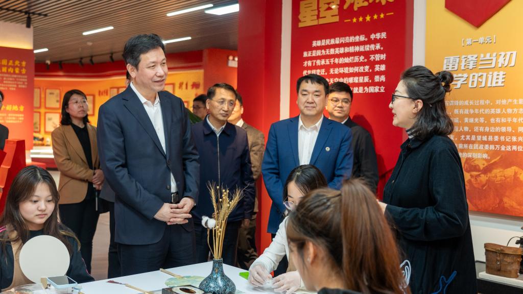 调研期间,靳国卫实地考察了化工报国·新时代雷锋精神育人中心、资源化工与材料教育部重点实验室,并走进马克思主义学院。在育人中心,观摩了思想政治实践教学课、美育课、“一站式”学生社区社工站活动,与正在上自习的学生亲切交流。在马克思主义学院,观摩了思政课教师集体备课会,听取了思政课建设、教育教学、教师培养、大学生思想状况调研等情况。在资源化工与材料教育部重点实验室,听取了副校长秦高梧汇报的实验室建设及成果转化等情况。