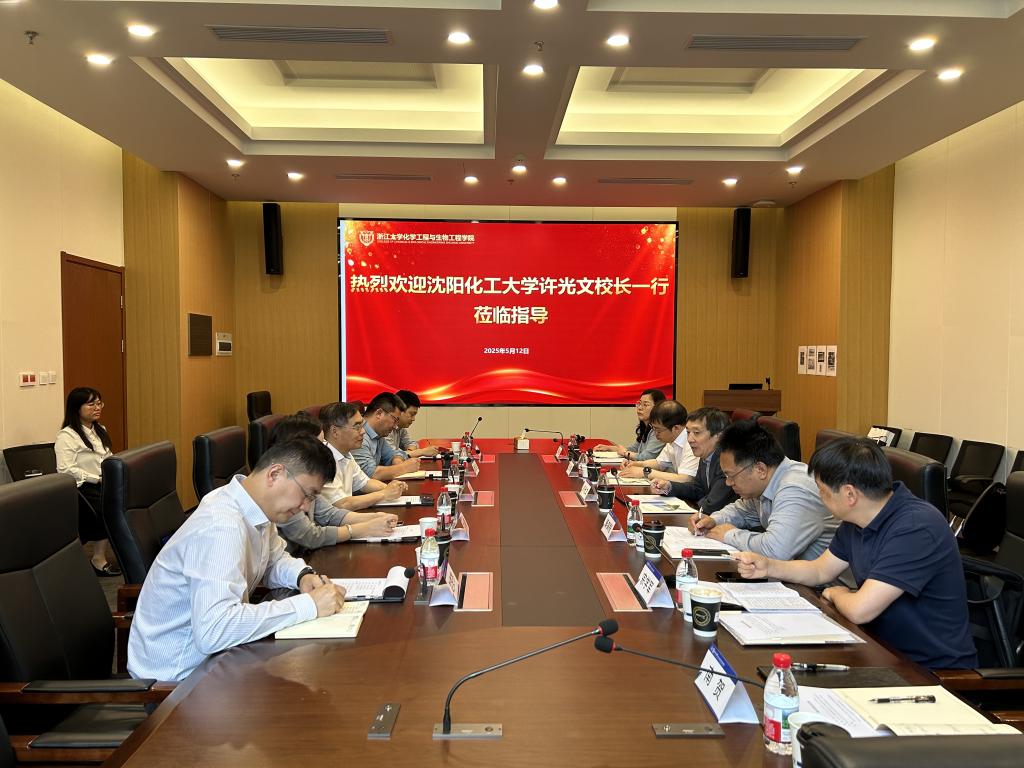 随后,校领导一行到浙江大学化学工程与生物工程学院调研座谈。双方就师资队伍、学科建设、创新成果、人才培养等方面开展深入研讨,后续将加强协同联动,发挥各自优势,聚焦重点领域,实现双方资源共享、人才共育、平台共建、产业共兴,共同推动两校在化工领域深度合作。