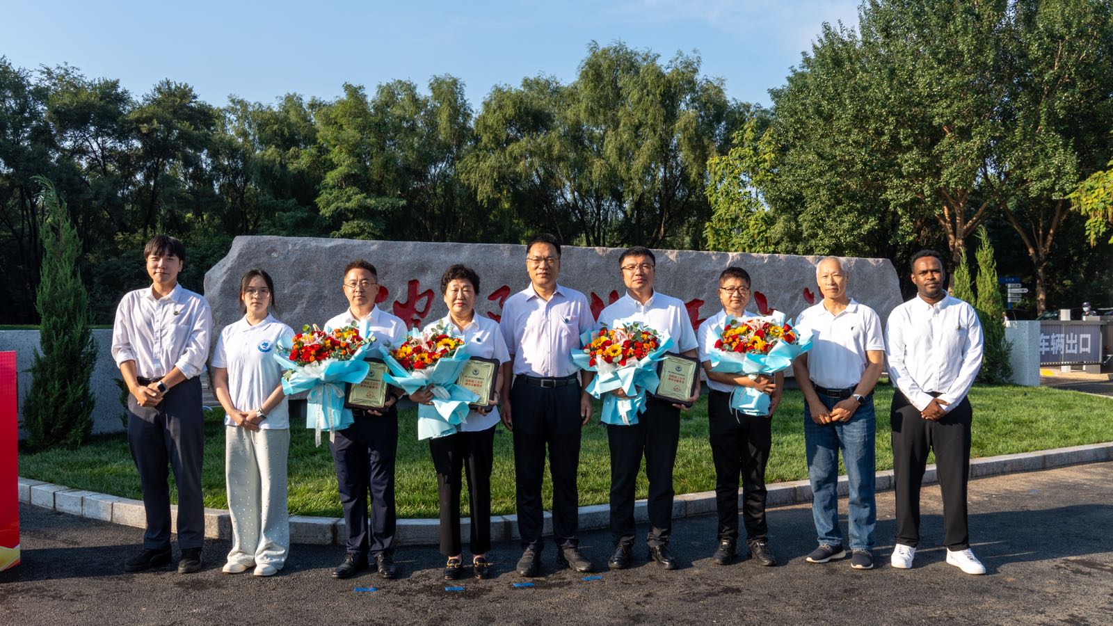 秦高梧为北校门改造建设倾注心血、无私奉献的校友企业及校友会代表颁发奖章。师生代表向校友代表敬赠鲜花,表达由衷的敬意与感谢。