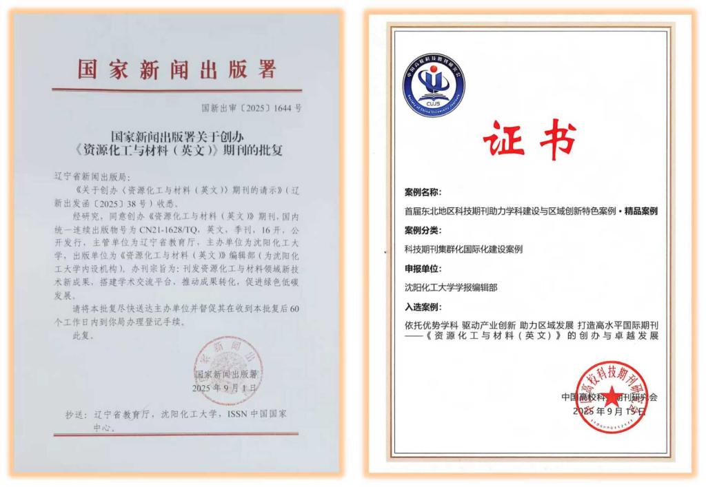 自创刊以来,RCM始终秉持“立足学科前沿、服务科技创新”的办刊宗旨,聚焦资源加工、转化和利用过程中涉及的化工产品与材料创制、生产、表征及其经济性等科学研究和技术开发成果,致力于搭建高水平学术交流平台。此次双喜叠加,不仅是全体编辑团队和运营团队精益求精、深耕学术、悉心经营的结果,更离不开学校党委的大力支持、领导团队的精心指导、广大作者和审稿专家及读者的信任与助力。未来,RCM将以此为契机,进一步提升学术质量与传播效能,加强国际合作与数字化转型,努力打造具有国际影响力的一流科技期刊,为推动我国科技事业发展贡献更大力量!