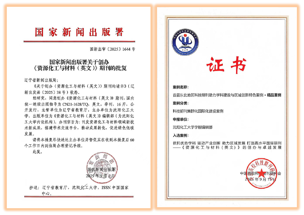 以上成就的取得,是在学校党委的大力支持、领导团队的精心指导、主编团队的战略引领、编委专家的专业把关、编辑部人员的周密策划和全力攻关,以及社会各界对期刊发展的鼓舞和支持下取得的。未来,RCM将以此为基础和契机,整合内外资源和力量、提升办刊标准和质量,依托ScienceDirect平台,依靠编委队伍和编辑团队,实现质量和效率的全面跃升,力争成为中国的领军期刊、成为连接世界资源化工与材料创新的“学术桥梁”。