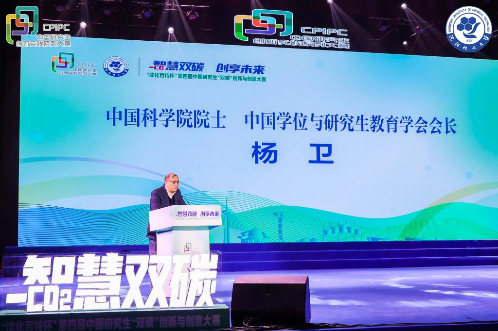 杨卫在致辞中表示,本届大赛是研究生教育服务国家战略、推动产教融合、助力地方发展的一次成功实践。他希望参赛师生以此次大赛为新起点,永葆探索热情和攻坚勇气,将创新智慧融入绿色发展实践,为推动经济社会绿色低碳转型贡献青春力量,在“美丽中国”建设中书写下无愧于时代的青春华章。