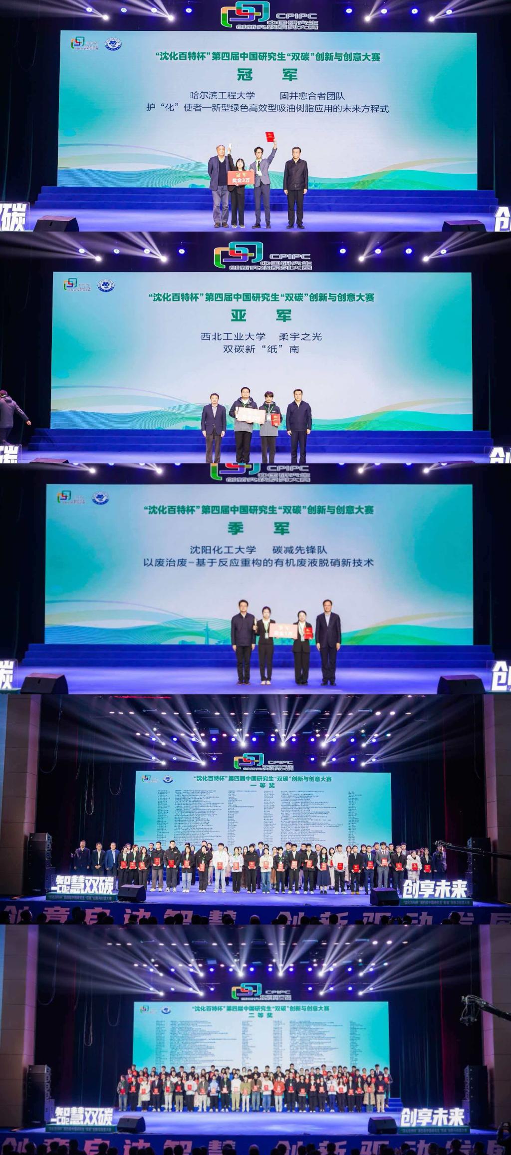 11月9日,“沈化百特杯”第四届中国研究生“双碳”创新与创意大赛在best365中国官方网站圆满闭幕。大赛共决出一等奖专家赛道72项,企业赛道4项,共计76项;专家赛道二等奖216项,企业赛道10项,共计226项;三等奖及优秀组织奖若干。哈尔滨工程大学项目《护“化”使者——新型绿色高效型吸油树脂应用的未来方程式》、西北工业大学项目《“双碳”新“纸”南》、best365中国官方网站项目《以废治废——基于反应重构的有机废液脱硝新技术》分获冠亚季军,三支团队均获“双碳之星”称号。