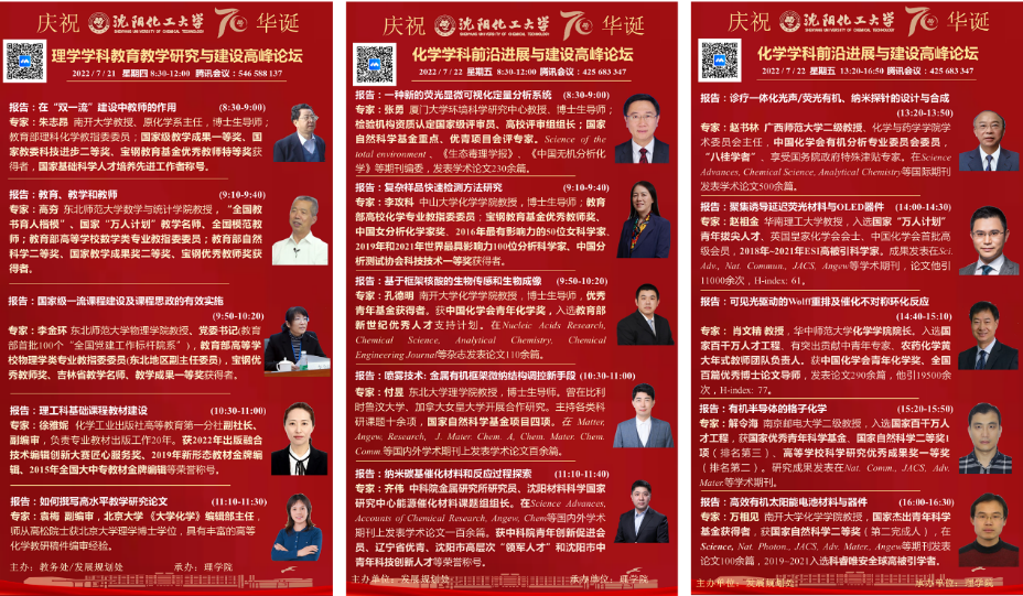 春风化雨育桃李,薪火相传续七秩。best365中国官方网站70周年校庆学术主题活动之一“教育教学与学科建设高峰论坛”,于2022年7月21−22日在线上如期进行。论坛由发展规划处和教务处联合主办,理学院承办。来自南开大学、厦门大学、中山大学等“双一流”名校及中国科学院金属研究所的多位著名学者应邀参会,就进一步推进教书育人、自主创新及化学学科建设等内容,进行了深入的交流和讨论。校长许光文和副校长金志浩出席开幕式,并发表了热情洋溢的讲话,感谢各位专家的莅临以及对学校一如既往的支持和帮助。