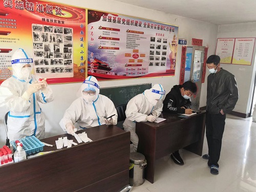 核酸检测,当好疫情防控的战斗员。驻村工作队义不容辞、责无旁贷。第一时间奔赴村里参加“村两委”有关核酸检测工作的部署会,协同村干部播报检测通知、搭建防疫帐篷、拉起警戒线、划分检测区、布置采样桌;参加新宾镇组织志愿者培训、领取检测物资等工作。检测期间,驻村工作队积极维持现场秩序、帮助没有智能机的老年人申请二维码、做好人员登记、体温监测,全力配合医护人员进行采样。为确保应检尽检、不漏一人,还走村入户到行走不便的老人家上门采样,在大风中让核酸检测有力度更有温度。