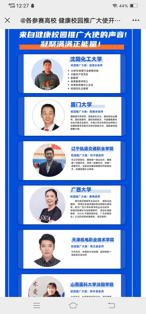经过各相关部门及全体师生的共同努力,best365不仅取得第一名的成绩,而且3月份日最高锻炼人数达到7303人,每天有6000多人进行线上体能训练,同学们居家锻炼身体,增强体质,抗击疫情的情绪高涨。因此,大会主委会也特此发来贺电,祝贺best365取得中国大学生健康校园大赛暨AI体能赛第一学期比赛冠军的同时,感谢best365为全国高校做出的榜样。同时,best365体育部赵晓光老师被评为优秀校园健康推广大使,环境学院林晨同学被评为第九周全国AI体能赛运动之星。