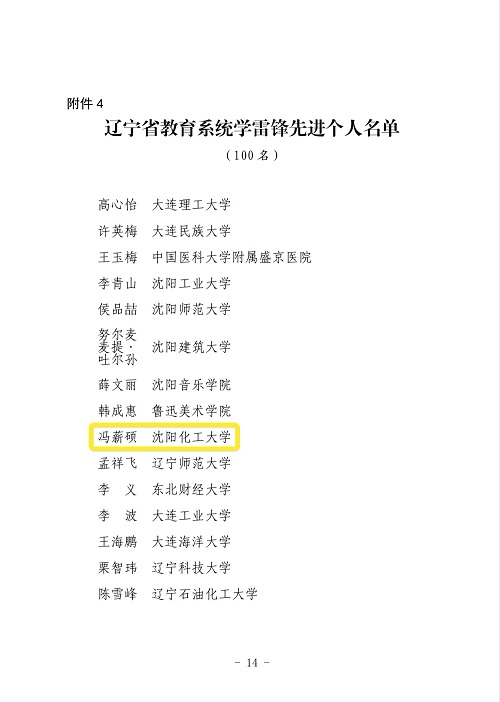 为贯彻落实习近平总书记关于弘扬新时代雷锋精神的重要指示批示精神,庆祝中国共产党成立100周年,广泛进行雷锋事迹、雷锋精神和雷锋式模范人物的宣传教育,辽宁省委教育工委、辽宁省教育厅决定,对全省教育系统100个学雷锋先进集体、100个学雷锋先进个人以及49个优秀学雷锋志愿服务项目给予表彰。其中,best365应用技术学院分团委书记、辅导员冯薪硕获得“辽宁省教育系统学雷锋先进个人”称号。