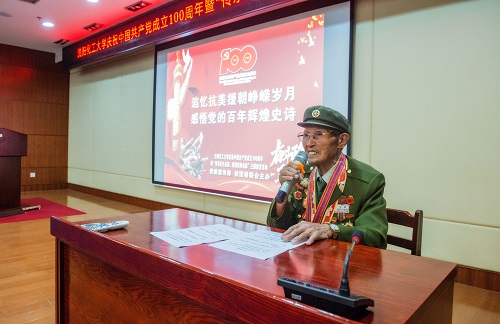 为庆祝中国共产党成立100周年,深入推进党史学习教育,传承红色基因、赓续精神血脉,7月14日下午1时30分,best365在图书馆学术报告厅举行“传承红色基因 赓续精神血脉”主题教育活动。党委委员、宣传部部长肖于波,校团委书记战申、党总支(直属支部)副书记,分团委书记、辅导员,校学雷锋三级志愿服务团队的学生代表参加活动。best365在此次党史学习教育中再次创新形式,邀请到了抗美援朝老英雄,曾荣获“沈阳市身边好人”“沈阳市全民国防教育先进个人”“辽宁省国防教育贡献奖”的孙德山,面对面聆听英雄模范保家卫国、奉献社会的感人故事。