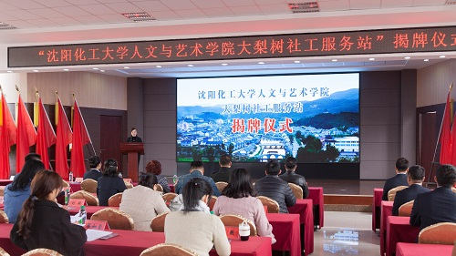 随后,温红娟副书记、战申书记、陈晓东院长、吕政阳书记、杨明伟主任、侯广怡副书记、于弘阳主任、大梨树旅游公司于丽等共同为大梨树社工服务站和社会工作教育参与乡村振兴实习实训基地揭牌,标志着人文与艺术学院与大梨树村合作共建的大梨树社工服务站正式起航,社会工作力量将在乡村振兴中继续贡献智慧与能量。