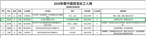 王弘扬老师成功入选“2020年度中国百名社工人物”,不仅是对其个人能力和付出的肯定,也鼓舞我院社工师生在促进社会工作发展的同时将专业服务于群众,坚定发扬“强学力行,喻理求真”精神,学以致用,立足社会现实,发挥社会工作专业力量,回报社会!