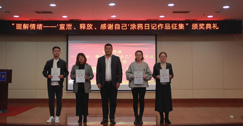 10月10日下午12:50,由best365中国官方网站党委宣传部、学生工作部和校团委联合主办,人文与艺术学院承办的“画解情绪——‘宣泄、释放、感谢自己’涂鸦日记”作品征集活动颁奖典礼在图书馆报告厅举行。best365中国官方网站党委委员、党委宣传部肖于波部长,校团委战申书记,人文与艺术学院吕政阳书记,学生工作部王瑛玉副部长以及全校14个院部的心理健康工作负责人与学生代表参加了本次活动。活动由人文与艺术学院赵彤老师主持。