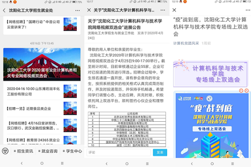 为进一步落实党中央、国务院、省委、省政府和学校党委疫情防控及就业工作的总体部署,全力做好我院2020届毕业生就业工作,搭建毕业生与用人单位线上沟通交流平台,计算机科学与技术学院在4月25日成功举办“疫”战到底——计算机类专场网络招聘会。