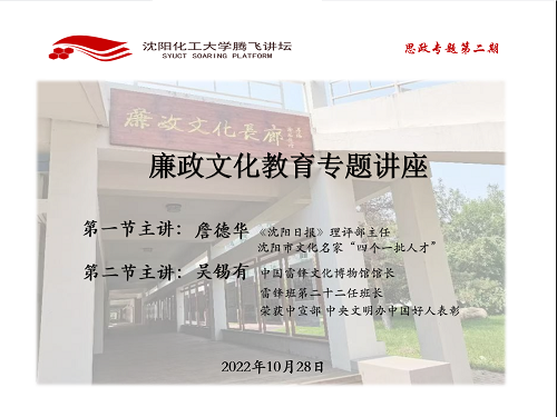 校党委宣传部和马克思主义学院围绕立德树人根本任务,以腾飞讲坛为平台,以廉政文化长廊内涵建设为抓手,以中国共产党清正廉洁的政治本色和政治品格为主题开展的这堂生动的思政课,使同学们深刻地了解了我国廉政文化的传承,对中华优秀传统文化、革命文化、社会主义先进文化有了更深刻的理解。