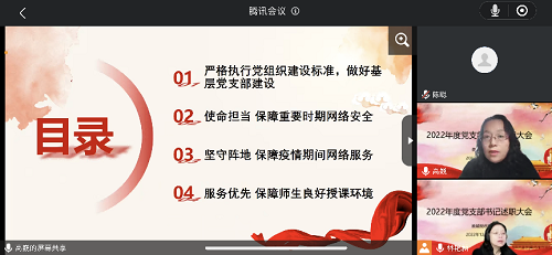 12月29日上午10点,教辅党总支开展线上2022年度基层党组织书记抓党建述职评议考核工作大会。会议由教辅党总支书记林艳新主持,教辅中层干部(含党外干部、民主党派)、全体党员参加了本次会议。