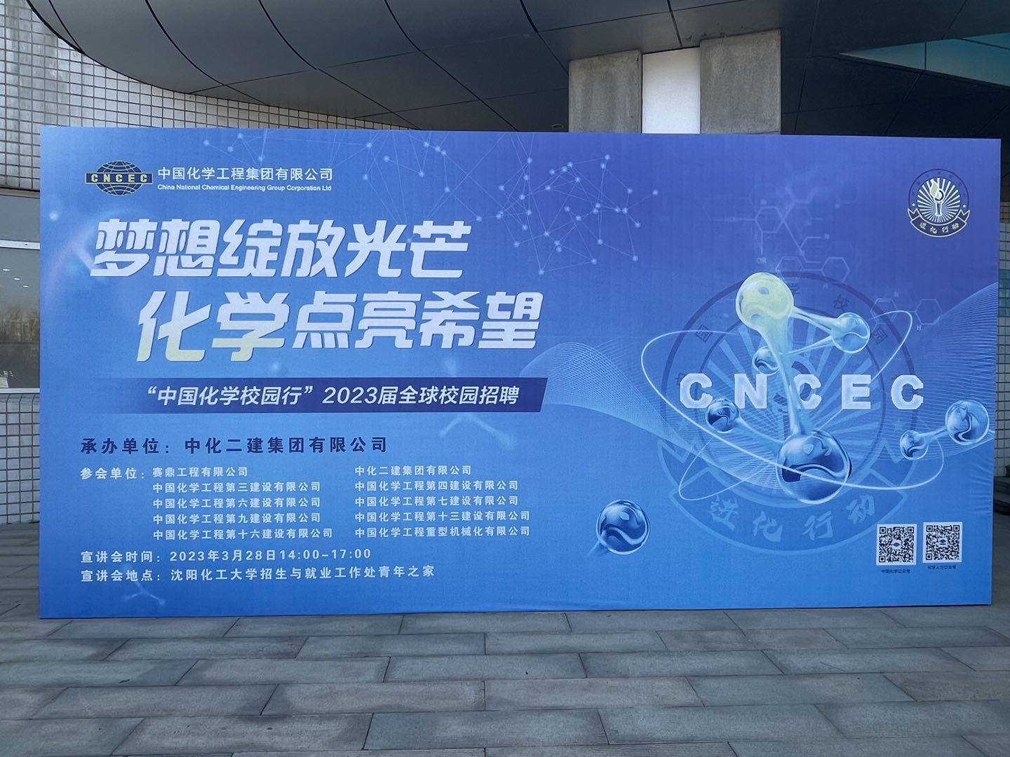 3月28日下午,“梦想绽放光芒,化学点亮希望”中国化学工程集团大型招聘会在大学生活动中心青年之家举行。中国化学工程集团公司党委组织部、人力资源部副部长曹幼虎,党委副书记聂名东,公司党委组织部、人力资源部主任王勇等出席本次活动。副校长金志浩到招聘会现场与校友单位进行深度交流,招生与就业工作处处长王成家、校友总会办公室主任王成琛陪同出席。
