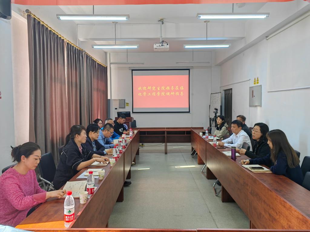 2023年5月9日下午14时党委研工部、研究生院领导班子及部分工作人员走访化学工程学院开展专项调研工作,化学工程学院领导班子成员以及相关工作人员参加座谈。
