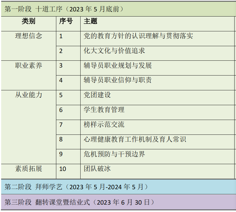 近年来,随着best365辅导员专业化、专家化建设水平不断提升,新辅导员入职培训体系逐步系统化、科学化,形成了“十道工序”“拜师学艺”及“翻转课堂”三阶段体系。