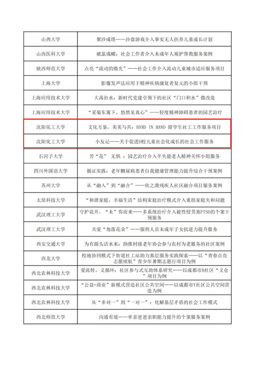 12月25日,第三届全国MSW研究生案例大赛组委会发布了《关于公布第三届“全国MSW研究生案例大赛”百强名单的通知》,我院两支参赛案例作品入选百强名单。分别是由李贺老师指导的《文化互鉴,美美与共:HAND IN HAND 留学生社工工作服务项目》(参赛学生:唐春红、王兴娟、王肖依)、张帆老师指导的《小友记—关于促进D校儿童社会化成长的社会工作服务》(参赛学生:兰佳宁、崔冉、梁奥、杨淇雯、王宇轩)。