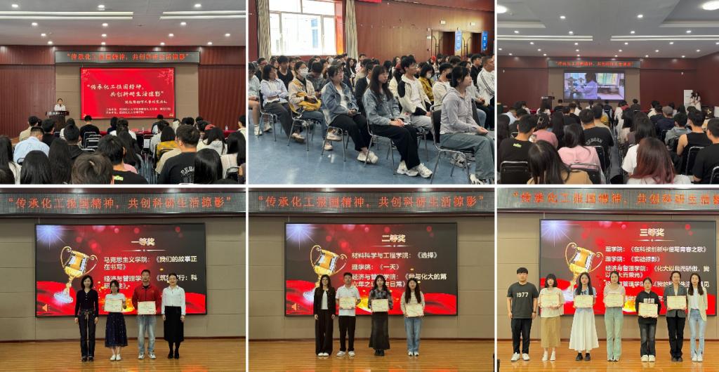 本次短视频创作大赛共收到各学院参赛作品二十余份,内容丰富多样,涵盖科研实验、学术探讨、学习生活等多个方面。经过激烈角逐和严格评审,最终评选出一等奖两组、二等奖三组、三等奖五组,优秀奖五组。大会上,党委研究生工作部部长杨海霞致辞发言,对本届大赛获奖研究生队伍表示热烈祝贺,对承办单位理学院在大赛组织和执行方面所做工作表示充分的肯定和感谢。鼓励研究生学子继续发扬化工报国精神,不断提高自身科研能力与创新意识,充分利用短视频这一新兴媒介,记录和展示科研生活,传递正能量。