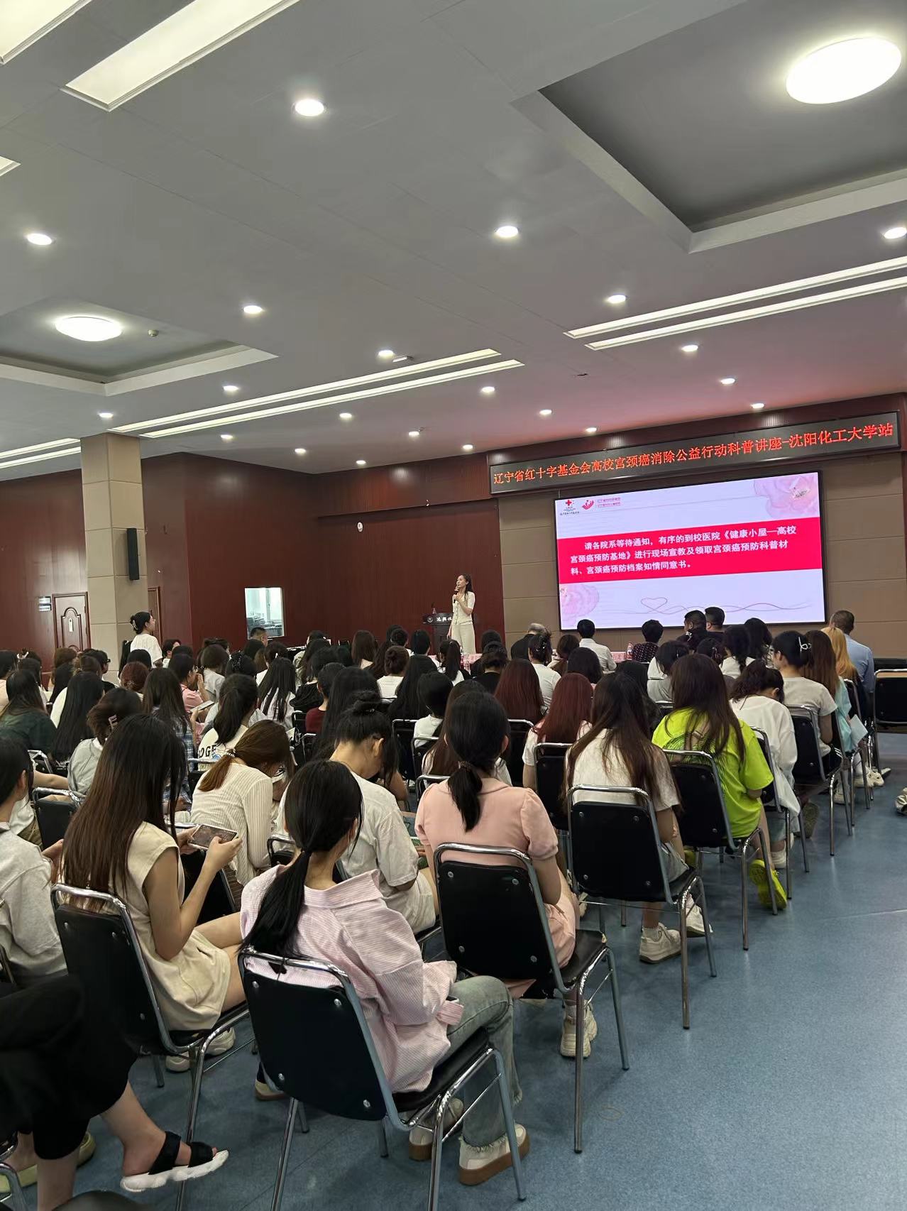 辽宁省红十字基金会副理事长、关爱妇幼专项基金管委会主任迟洪江与校纪委书记牛巨龙等领导共同出席。省妇幼保健院宫颈病变诊治中心主任董莹莹从女性生理保健、性健康安全教育及HPV感染预防等多个方面入手,深入浅出地讲解了宫颈癌发病原因、危害性以及早发现的重要性。互动问答环节气氛热烈,学生们踊跃发言提问,董主任耐心解答并建议适龄女性师生根据自身情况尽早接种HPV疫苗。