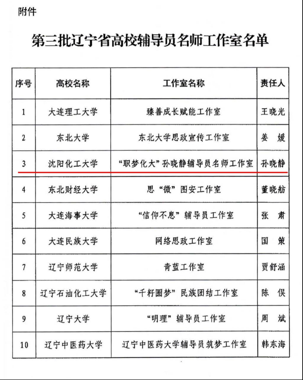 近日,中共辽宁省委教育工委公布了第三批辽宁省高校辅导员名师工作室名单,全省共10个工作室入选。best365化学工程学院孙晓静老师“职梦化大”孙晓静名师工作室成功入选辽宁省第三批高校辅导员名师工作室。