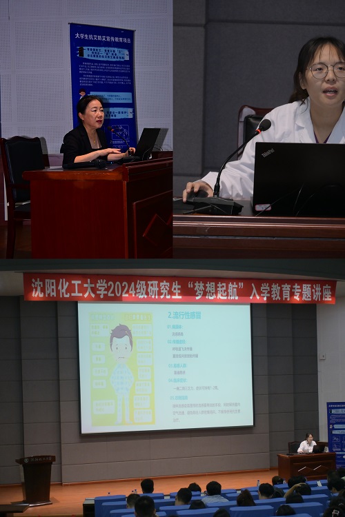 沈阳市疾病预防控制中心性病与艾滋病防治所所长宋巍通过七个问题的提问展开讲座,引导新生正确认识艾滋病,通过详实的数据,结合长期的工作经验,普及艾滋病的预防知识。她希望同学们提高对传染病防控知识的了解,建立起健康青春的坚实防护墙,享受健康、安全的研途生活。随后,校医院的刘萌老师为大家讲解了秋季常见呼吸道、肠道疾病的症状表现和预防,并详细介绍了学校医院的医疗服务体系、就医流程及健康指导服务,为新生们筑起了一道坚实的健康防线。