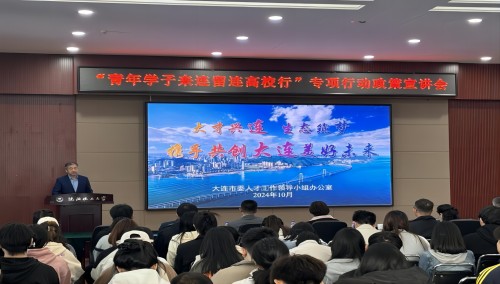 为深入贯彻落实辽宁省“百万学子留辽来辽”专项行动,全方位、近距离、精准化服务best365毕业生高质量充分就业,10月15日,学校联合中共大连市委人才工作领导小组在大学生活动中心青年之家举行“青年学子留连来连高校行”专项行动——best365中国官方网站站宣讲活动。大连市国资委党委委员、副主任孙国友,校党委学生工作部部长、学生工作处处长孟野,相关部门负责同志、企业代表和300余名学生参加活动。