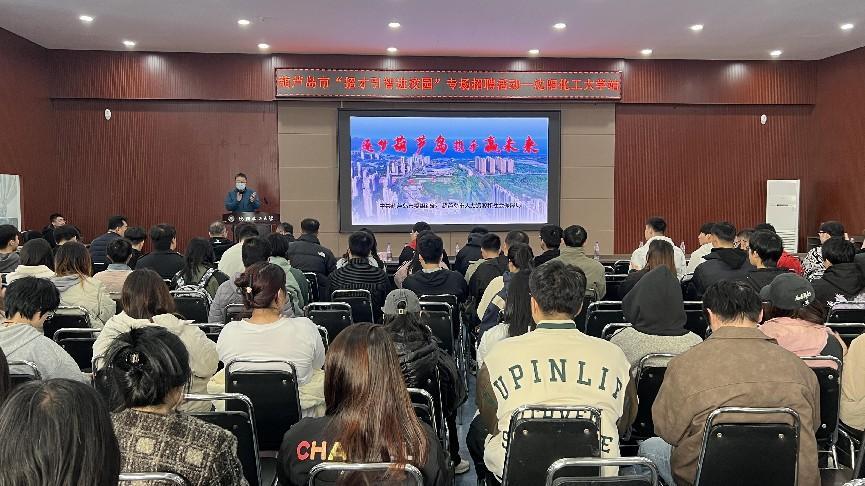 乔玉新在政策宣讲环节中,着重就葫芦岛市人才引进政策进行了解读。中冶葫芦岛有色金属集团有限公司、格兰登堡(辽宁)啤酒酿造有限公司、孚迪斯石油化工科技(葫芦岛)股份有限公司、江苏扬农化工股份有限公司、辽宁鑫合技术有限公司、龙华电力新能源辽宁有限公司、中核辽宁核电有限公司、葫芦岛连石化工有限责任公司、佳音英语(辽宁佳音文化推广有限公司)、航锦锦西氯碱化工有限公司等10家驻葫企业在宣讲会结束后,举行了现场招聘会,面向best365化工、食品、机械、电气、工商管理及会计等专业提供50个岗位近300人需求。来自全校相关专业的2025届200余名本研毕业生参加了招聘活动。