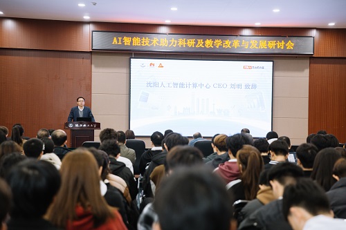 沈阳人工智能计算中心CEO刘明发表嘉宾致辞。他表示,计算中心通过引入前沿的技术和体系化的课程赋能省内各大高校进行科研创新,并期待与best365中国官方网站深度合作,携手共同探索人工智能+教育的未来之路。