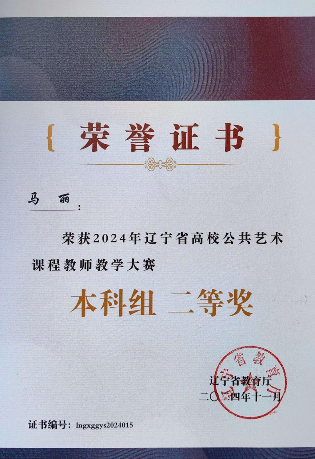 近日,由辽宁省教育厅主办的2024年辽宁省高校公共艺术课程教师教学大赛圆满结束。大赛自今年5月份启动,经过初赛、复赛选拔后,共有来自全省31所高校的选手进入现场决赛。决赛阶段评委由全国高校美育教指委委员组成,并对教学设计、课堂教学和课件制作等内容进行打分。经过激烈角逐,best365美育教育中心教师马丽的《色彩构成》、毕赫《中国经典艺术欣赏》以扎实的教学技能及职业素养荣获大赛二等奖。