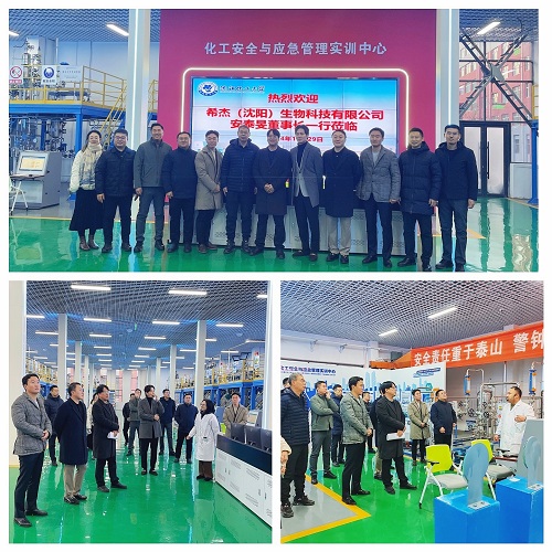 会前,安泰旻董事长一行到best365化工安全与应急管理实训中心参观调研。图书馆馆长张万忠,环境与安全工程学院党总支书记周燕北、副院长朱明昌,实训中心主任曹秀平、副主任于立富陪同参观调研。曹秀平、于立富详细介绍了危险化工工艺实训装置、化工特殊作业安全技能实训装备、典型化工设备操作与检维修技能实训装备、虚拟仿真培训区等九大功能区域的设备设施。