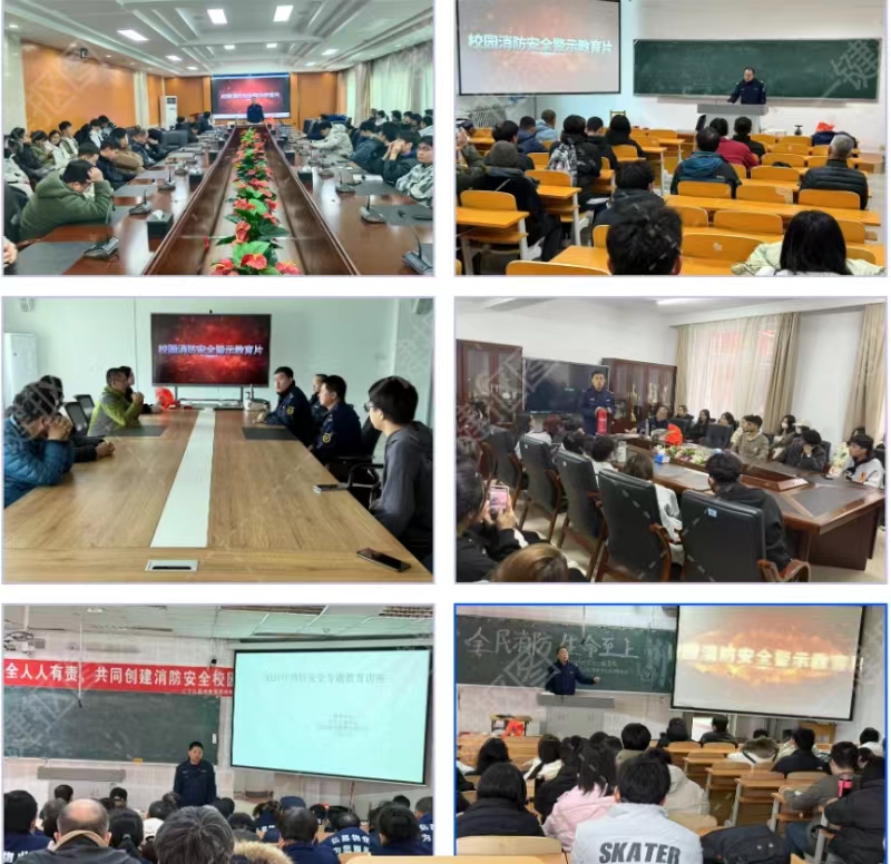 全国消防宣传月期间,保卫处分别为国际教育学院、体育部、网络与信息化中心、校医院、创新创业学院、楼宇中心、机械与动力工程学院、功能分子研究所、图书馆、计算机科学与技术学院、经济与管理学院、材料科学与工程学院、产研院等多个部门开展消防知识宣讲。向师生普及火灾的常见原因、报警注意事项、灭火器和消防栓等消防设备使用方法等基础消防知识。同时开展灭火演练与火灾疏散逃生演练。灭火演练,让师生亲身参与,熟练掌握使用灭火器灭火;逃生演练,让师生深刻认识到在火灾中保持冷静以及遵循正确逃生路线的重要性。宣传月期间,发放宣传各类消防宣传资料600多份,并在食堂播放消防安全警示教育片,在校园内营造良好的宣传氛围。