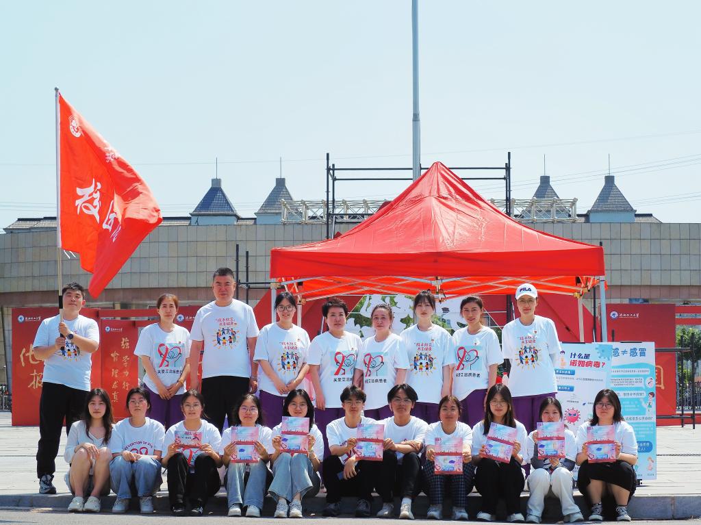 6月11日,校园为“艾”健步走打卡活动接力开展,现场巧妙设置图书馆、社会主义核心价值观广场等五个打卡点变身为“防艾小课堂”,“新鲜出炉”的文化衫成为“流动宣传册”,让严肃的防艾知识在轻松氛围中广泛传播。活动中,党员师生主动承担路线指引、医疗保障等服务工作,绘就“医路向党、师生同行”的生动画面。同学们以实际行动诠释防艾承诺,在挥汗前行中圆满完成打卡挑战。本次活动共220余名学生参与,发放防艾纪念品170余人次。