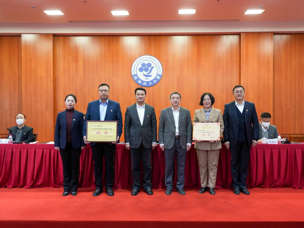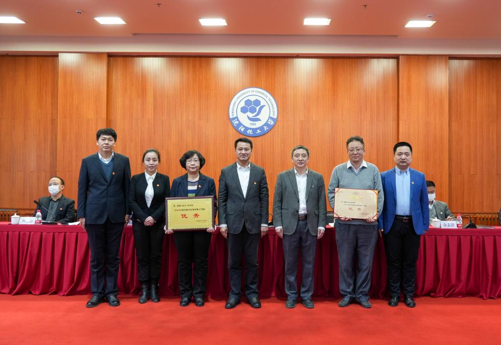 党委书记王强、校长许光文为2022年度考核优秀的中层领导班子颁发奖牌和证书。