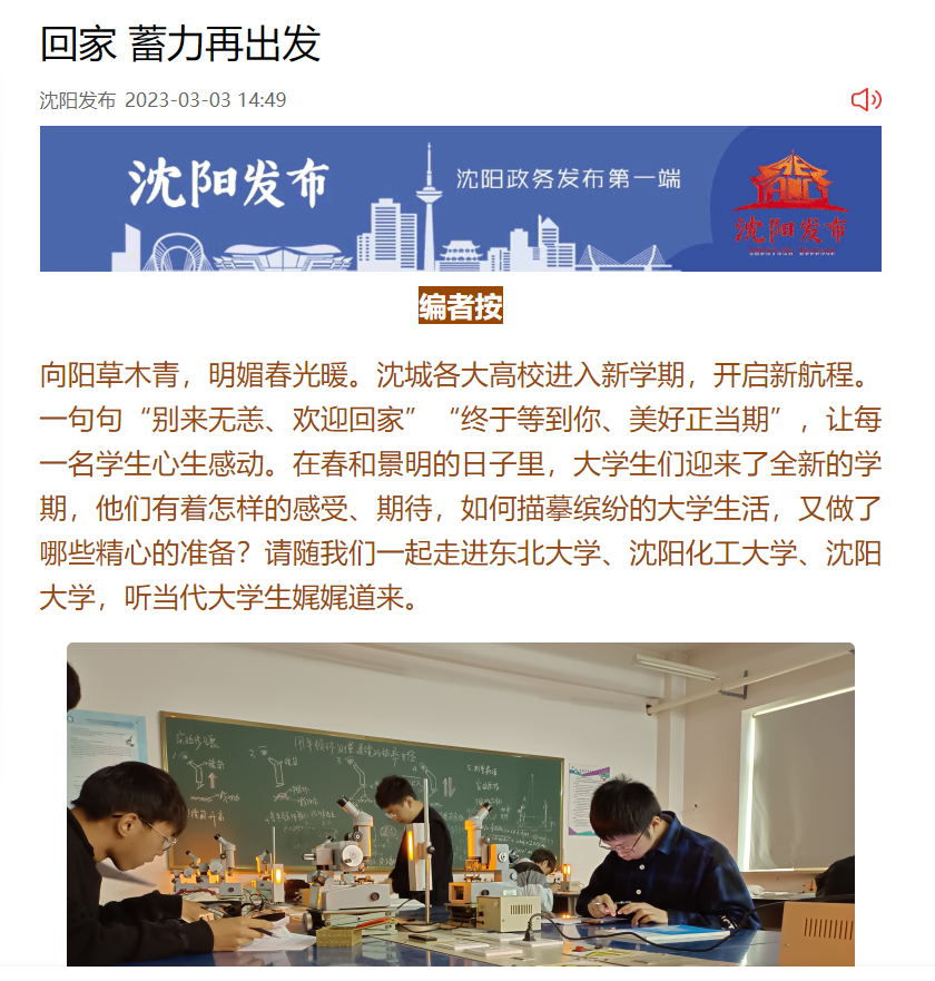 近日,《沈阳日报》、沈阳发布客户端以《回家 蓄力再出发》报道best365学生新学期新气象。