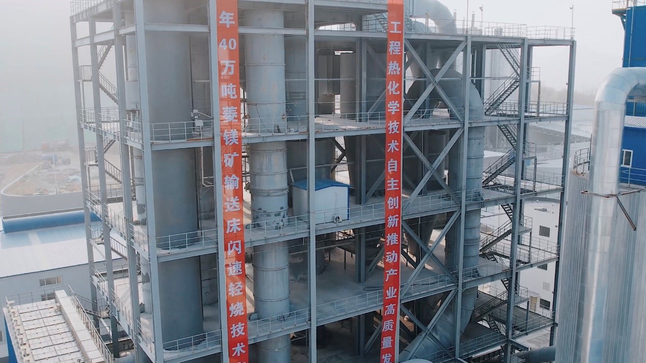 今年9月,“年40万吨级菱镁矿输送床闪速轻烧工程”在辽宁海城菱镁新材料产业基地辽宁隆镁科技有限公司实现了全流程成功运行和试生产,原料处理量达到55吨/小时规模,并实现稳定连续运行,生产能力替代了25台菱镁矿轻烧“反射窑”。许光文介绍,示范工程煅烧粒径100微米级矿石原料,也可煅烧低劣难利用的浮选微细尾料,煅烧反应器温度由原来的1200℃降至900℃,反应时间仅为短短数秒,工程装置实现了全流程封闭运行且无粉尘外扬。