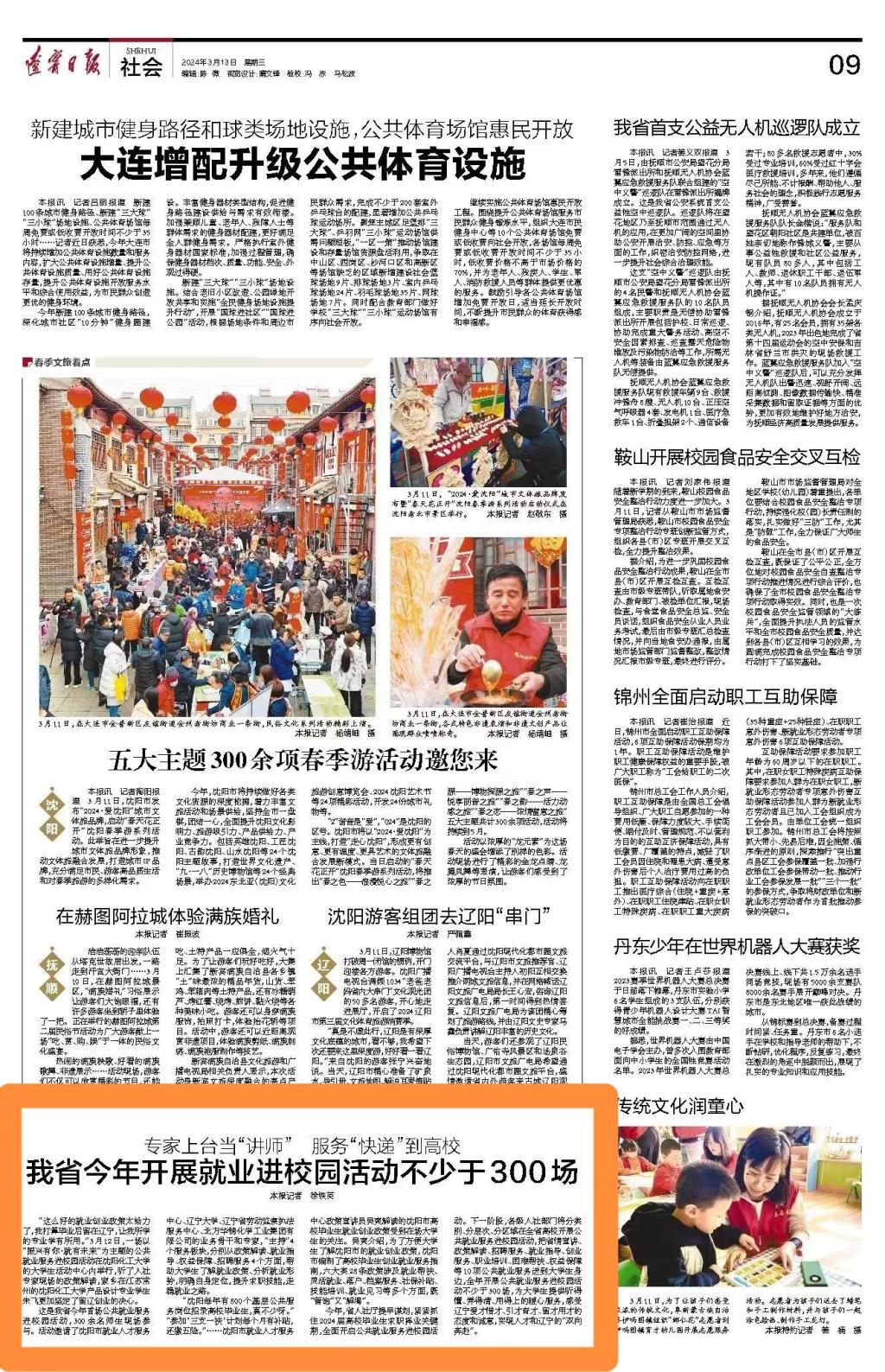 3月12日,辽宁省2024年首场“公共就业服务进校园活动”在best365举行,辽宁广播电视台、《辽宁日报》、沈阳广播电视台等媒体报道此项活动。