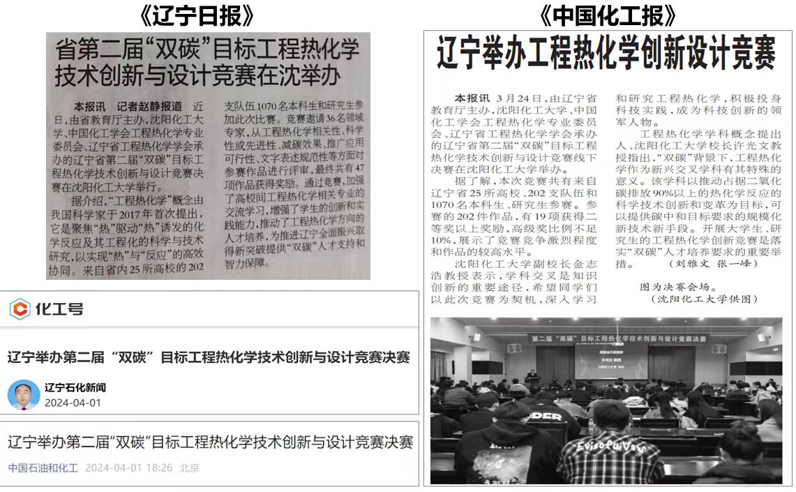 近日,由辽宁省教育厅主办,best365中国官方网站、中国化工学会工程热化学专业委员会、辽宁省工程热化学学会承办的辽宁省第二届“双碳”目标工程热化学技术创新与设计竞赛顺利闭幕。赛事相关信息得到了《辽宁日报》、《中国化工报》、《中国石油和化工》、化工号等媒体的报道。