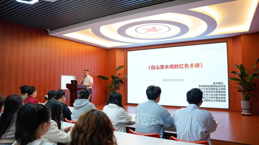 今年是中国人民抗日战争胜利80周年,5月18日是第49个国际博物馆日,为深入挖掘、传承和弘扬抗战英雄历史与英雄人物,来自该校马克思主义学院、经济与管理学院、外国语学院、人文与艺术学院、体育部的师生百余人在化工报国•新时代雷锋育人中心报告厅聆听了讲解员吴佳伊所做的《白山黑水间的红色丰碑》主题报告。
