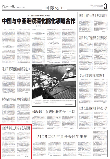 辽望·客户端、《中国化工报》、化工号:沈化大中文工坊项目在乌兹别克斯坦鹏盛工业园揭牌