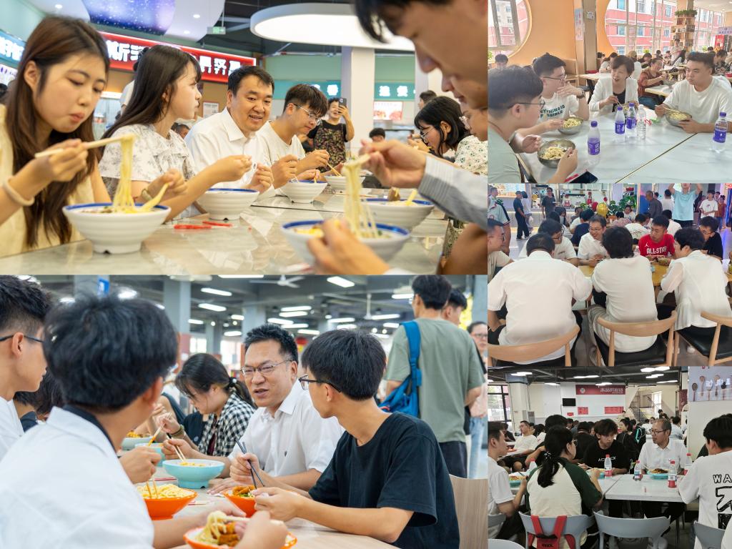 “上车饺子下车面”,学校还为新生精心准备了“迎新面”,并为每名新生印制了纪念餐券。中午,校领导看望了在食堂品尝“迎新面”的新生及家长,带去学校的心意和关怀。