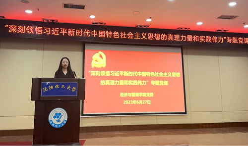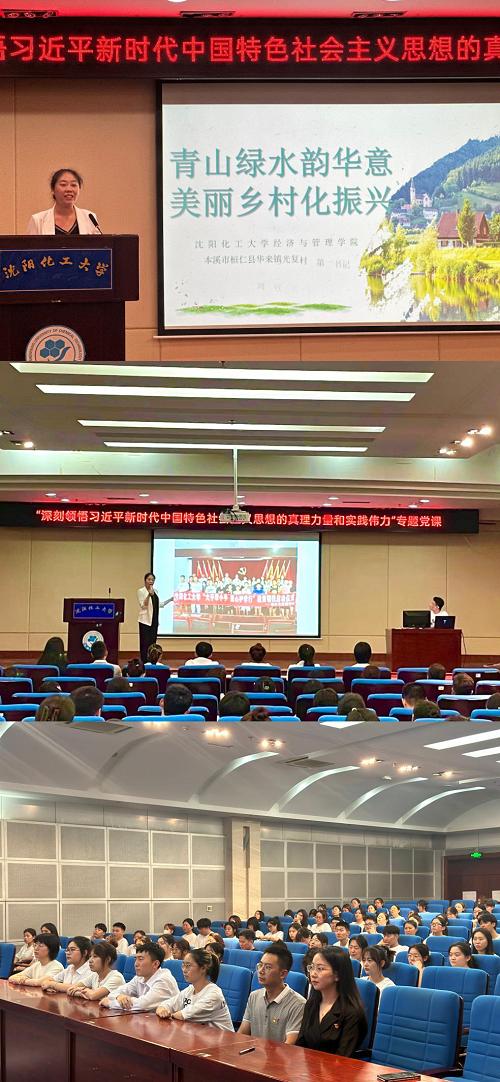 为深入推进学习贯彻习近平新时代中国特色社会主义思想主题教育,经济与管理学院党委积极组织开展迎“七一”主题党日活动,让党员教育“活”起来。6月27日下午,学工办邀请驻本溪市桓仁满族自治县华来镇光复村第一书记刘欣页同志回到学院,她以“青山绿水韵华意,美丽乡村化振兴”为题,走近学生党员中间,以自己所学所思、所见所闻、所行所动,为学院本研党支部大学生党员和部分入党积极分子上了一堂生动党课。