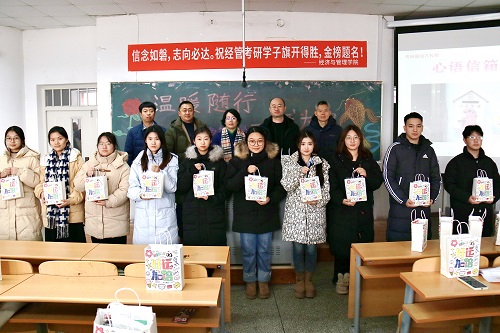 2024年考研征程已进入冲刺阶段,为鼓舞考研学子士气,增强考研信心,鼓励同学们在最后阶段做好充分准备,12月13日中午,经济与管理学院在瑞师楼118室举办了考研暖心送考活动,为考研学子送上温暖祝福。学院领导班子及全体辅导员出席活动。活动由辅导员张国平主持。
