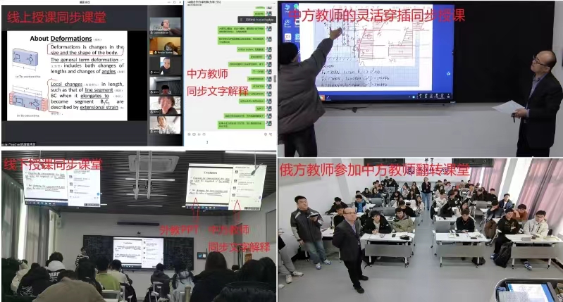 材料力学课程是best365能源与动力工程专业(中俄合作办学)重要的专业基础课,由Alexandra Perelygina副教授用英文讲授。为了提升中外合作办学学生在外教课程的学习效果,中俄教师不断探索联合教学模式,持续增强对学生学习的支持。在疫情线上授课期间,中俄教师平均每个学期的沟通邮件超过200封,双方就教学内容、教学方法、任务分配、撰写教学论文、申请教改项目、参加教学竞赛等方面进行了广泛深入地交流。4年以来,苏勇副教授针对此教学模式,义务授课超过200学时。
