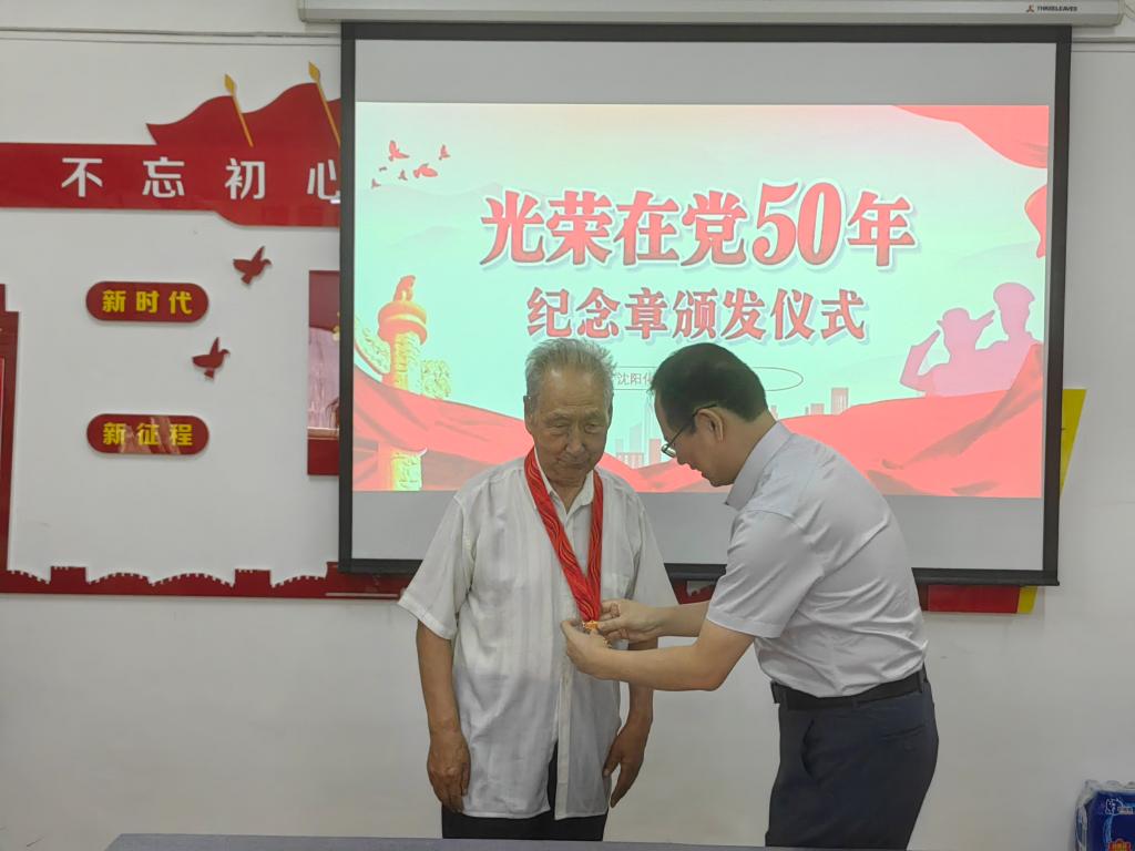 为热烈庆祝中国共产党成立103周年,深入学习宣传贯彻党的二十大精神,进一步增强老党员的荣誉感、归属感、使命感,离退休党委于“七一”当日举办“光荣在党50年”纪念章颁发仪式。