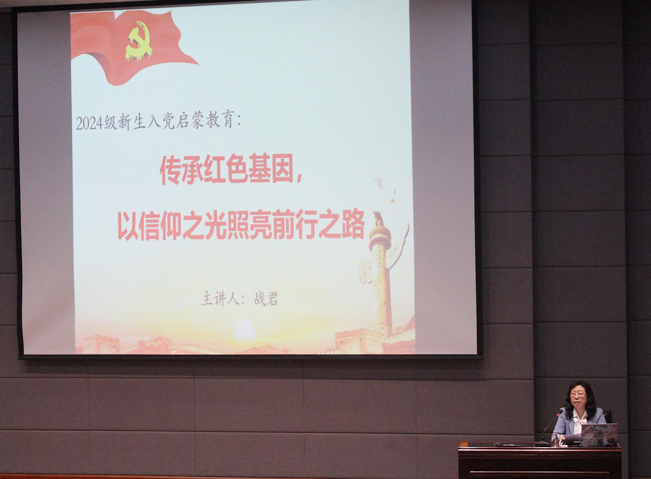 战君以《传承红色基因,以信仰之光照亮前行之路》为题讲授第一课。她以张珍老校长坚守理想信念,投身化工,矢志报国的感人事迹为切入点,与同学们共同回顾了中国共产党的百年光辉历程和创造的“四个伟大成就”,阐述了党始终坚持“人民至上”的不变初心,并向同学们宣讲了党的二十届三中全会精神。她希望同学们要端正入党动机、坚守入党初心,要坚持筑牢信仰之基、补足精神之钙、把稳思想之舵。面对当前百年未有之大变局正在加速演进,中华民族伟大复兴进入关键时期,战君书记寄语新同学“勇担使命,强国有我,争当先锋力量”:要做复兴圆梦的理想者,不负韶华,将个人价值追求融入到党和人民的事业之中;要做实学实干的践行者,扎实积累,经历不断刻苦修炼自我升华;要做服务人民的奋进者,领悟担当,在服务国家发展中成就自己。