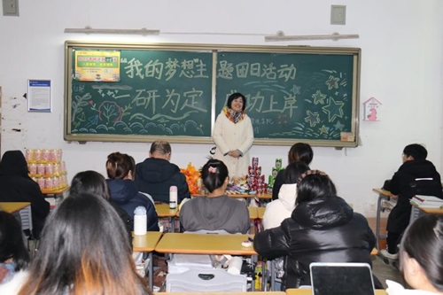 为了推进“一站式”学生社区综合管理模式建设,不断加强团学建设、充分发挥朋辈引领示范作用,进一步引导考研学生自我管理,12月5日,经济与管理学院以全体考研学生为成员,成立了2021级临时团支部,并以“我的梦想”为主题在考研自习室(景唐楼112室)开展了一次特殊主题团日活动。经济与管理学院党委书记李丙文、院长王蓉、副书记关婷、全体辅导员参加了活动,活动由2021级辅导员刘伟主持。