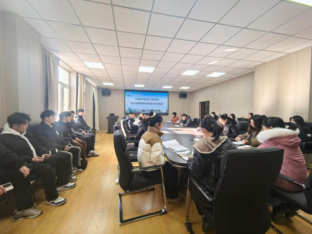 为深入落实三全育人理念,优化育人策略,确保学生在学业与生活中获得精准指导,环境与安全工程学院于12月11日在祥麟楼303室组织召开了2023级学生代表与班主任学业交流会。学院党总支书记周燕北,副院长朱明昌、王莹、刘丹丹,2023级辅导员李明月,2023级班主任及学生代表参加会议。