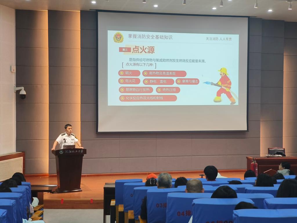 随后,保卫处副处长宁志高结合高校典型火灾案例,系统剖析宿舍违规电器、实验室操作不当等校园火灾隐患,并通过《校园消防安全警示教育片》,使师生进一步认识火灾的危险性,增强消防意识,时刻牢记消防安全。
